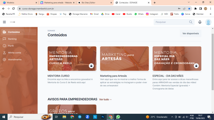 Abri o Donage para ganhar uma renda extra e poder casar logo, por isso, investi desde o comecinho em aprender a divulgar o meu produto através de cursos de Marketing.
