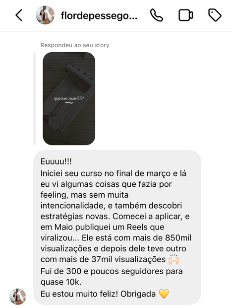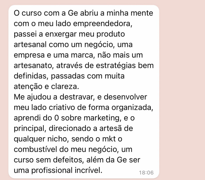 Depois de me tornar uma referência no macramê e nos conteúdos que eu criava, decidi (depois de muitos pedidos) criar um curso ensinando outras empreendedoras artesãs a como vender e se destacar dentro do Instagram, vendendo e vivendo do seu artesanato!